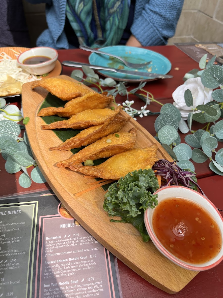 Golden fried wonton filled with seasoned cream cheese and imitation crab meat served with sweet & sour sauce